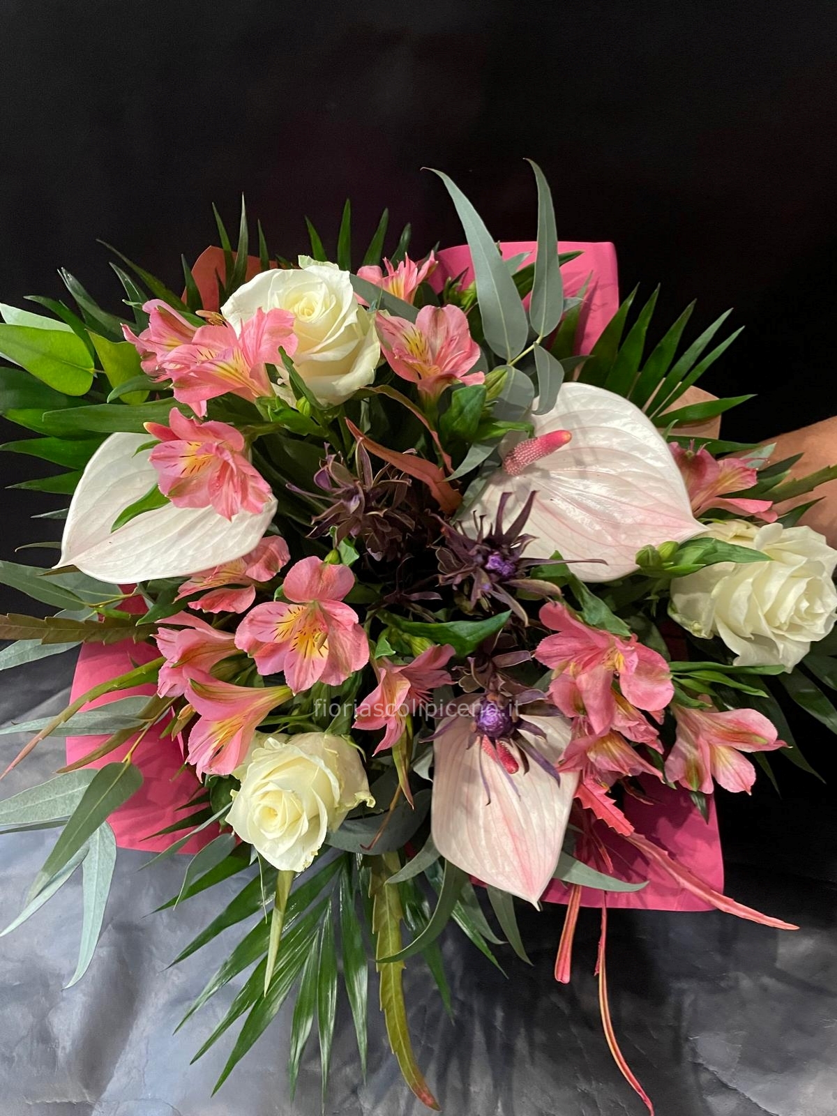| Bouquet tonalità delicate con anthurium Cod. 124675 |